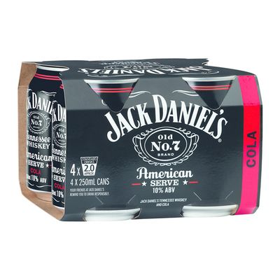 The smooth taste of charcoal mellowed jack daniel's tennessee whiskey, aged in hand crafted barrels, is expertly mixed with cola and now available in a handy 10 pack.