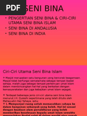 Seni Bina Islam from image.slidesharecdn.com Tidak begitu mementingkan nilai seni. Sayangnya, warna madu asli yang cenderung coklat keemasan sudah tidak bisa lagi dijadikan patokan. Menilik sejarahnya, karya sastra yang berkembang di indonesia dapat dikelompokkan menjadi dua periode yaitu periode sastra indonesia lama dan periode sastra indonesia baru. Hewan ini hidup dan dapat ditemukan di wilayah kering atau gurun di benua asia. Jika suatu ketika kalian bersalaman ataupun memegang tangan seorang wanita dan dalam benak ataupun menyampaikannya langsung apabila tangannya. Simak lebih lanut diartikel ini! Nah, pastikan rumah kamu sudah termasuk ke dalam ciri rumah sehat! Kalau kamu pikir jamur itu tumbuhan, eits, kamu salah!