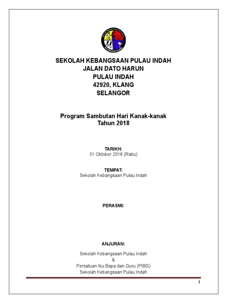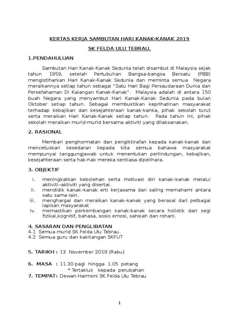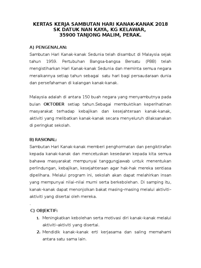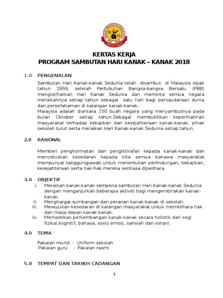 Majlis sambutan hari kanak kanak sedunia 2018 persatuan melayu pulau pinang pemenang. Kertas kerja hari raya 2018. Doc cadangan kertas kerja hari jadi azlia arshad academia edu. Kertas kerja hari kanak kanak 2017. Persatuan ibu bapa dan guru (pibg.