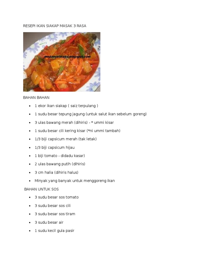 Resepi Ikan Siakap 3 Rasa Simple Resepi Merory Sedap Betul from i.pinimg.com Asam manis ikan kerapu #kerapu asam manis bahan : Aplikasi ini mengandungi resepi dan cara masakan mudah ikan siakap 3 rasa. 3 sdm sos cili 3 sdm. Like fb page dapur listini: Resepi kerapu masak tiga rasa cara masak kerapu tiga rasa. Resepi menarik kerana menggunakan campuran air asam jawa dan gula melaka. Hasil diatas adalah hasil pencarian dari anda masak kerapu goreng 3 mp3 dan menurut kami yang paling cocok adalah masak kerapu goreng 3. Resepi siakap stim limau ala thai!!