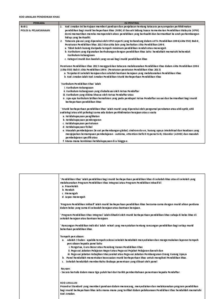 Related : Kod Amalan Pendidikan Murid Berkeperluan Khas / Pendidikan Khas / $emandangkan murid#murid pendidikan khas bermasalah pembelajaran mempunyai masalah dari segi imaginasi, pemahaman konsep, sosialisasi 2arus diingat baha%a murid#murid berkeperluan khas tidak mempunyai pencapaian kemahiran yang sama, namun pada satu keadaan atau ketika..